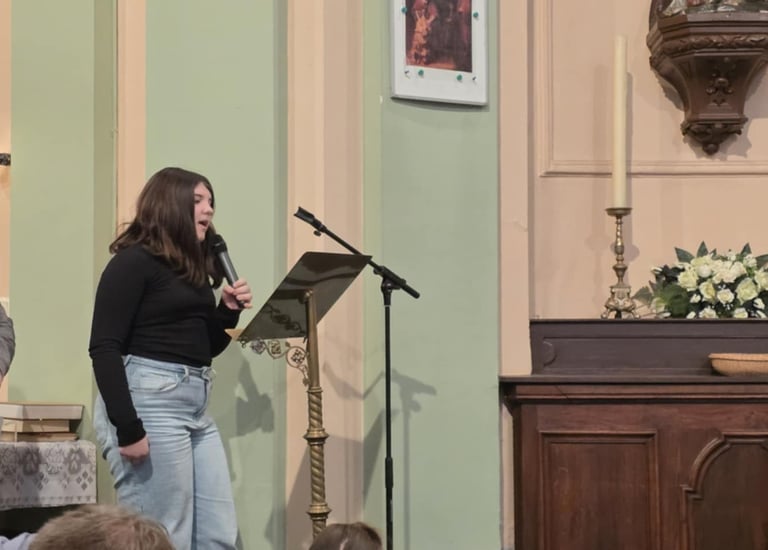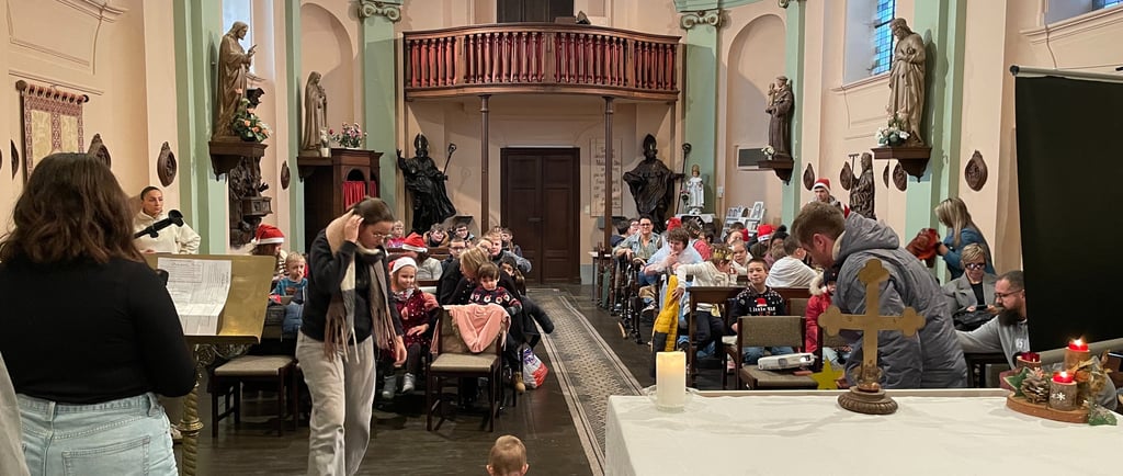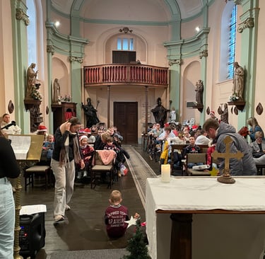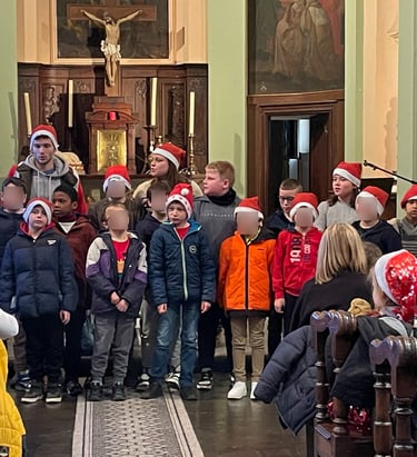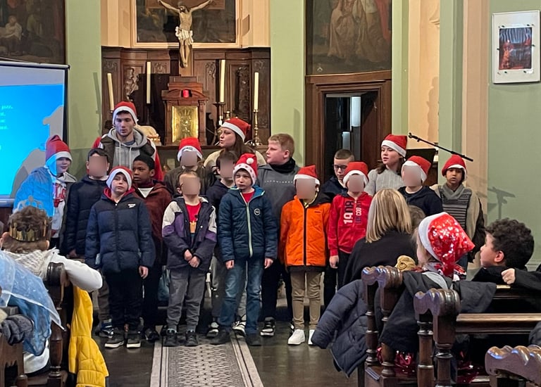 Ă lâoccasion de la fĂȘte de NoĂ«l, toute lâĂ©cole sâest rendue Ă lâĂ©glise pour vivre un merveilleux moment tous ensemble, dans une ambiance chaleureuse et festive.