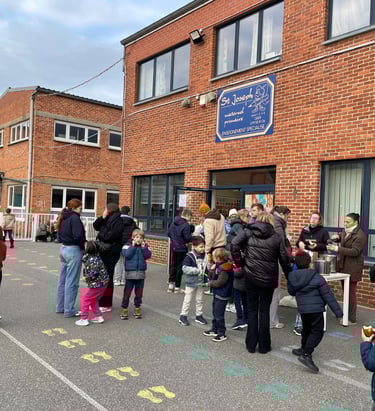 Cette cĂ©lĂ©bration de NoĂ«l restera un trĂšs beau souvenir pour tous. De retour Ă lâĂ©cole, nous avons prolongĂ© ce moment de partage autour dâun dĂ©licieux cougnou et dâun bon verre de cacao chaud, pour le plus grand bonheur des gourmands âđ