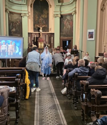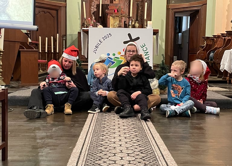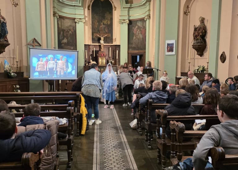 Toute lâĂ©cole sâest rĂ©unie Ă lâĂ©glise pour cĂ©lĂ©brer NoĂ«l Ă travers chants, priĂšres, une crĂšche vivante et un conte plein de belles valeurs. La fĂȘte sâest terminĂ©e dans la joie, puis autour dâun cougnou et dâun cacao chaud Ă lâĂ©cole.