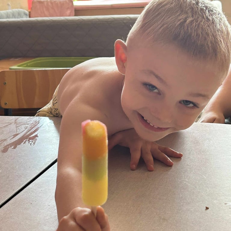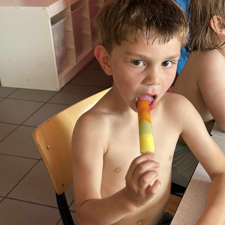 Et pour couronner le tout, les enfants ont dégusté un bon glaçon bien frais, à savourer lentement aprÚs toutes ces aventures mouillées !