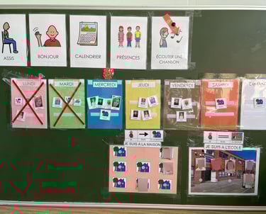C’est pourquoi nous utilisons des supports visuels (images, pictogrammes, horaires…) pour :