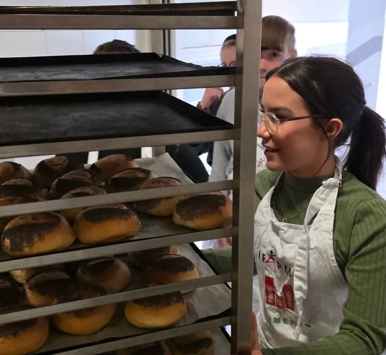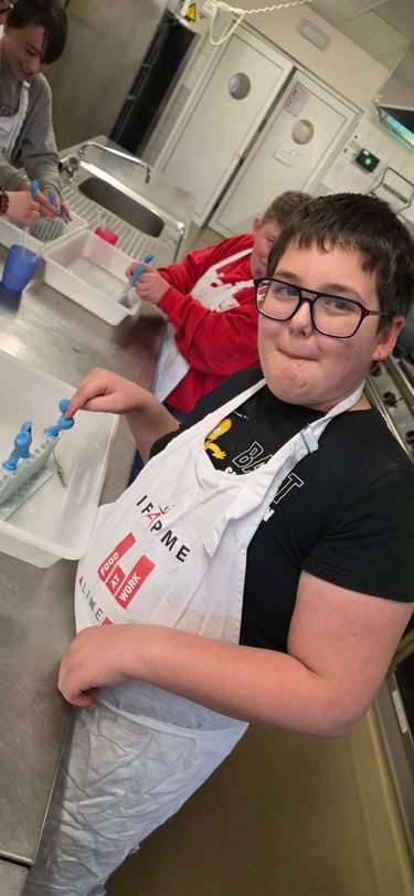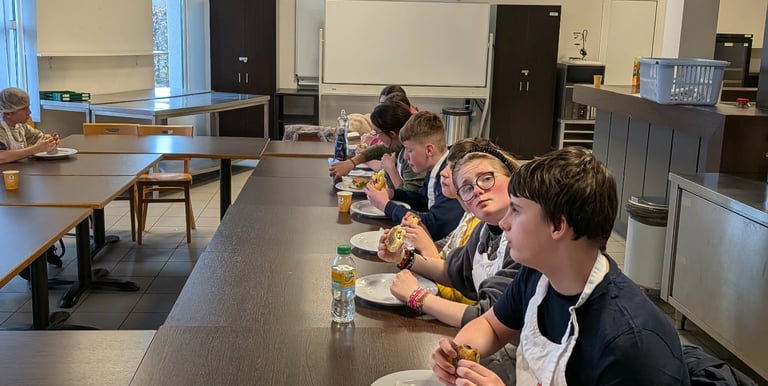Les élèves sortants de l’école ont participé à une journée de découverte des métiers à l’IFAPME de Villers-le-Bouillet. Entre boulangerie, cuisine, pâtisserie et expériences scientifiques, ils ont appris en pratiquant et partagé un moment gourmand et enrichissant.