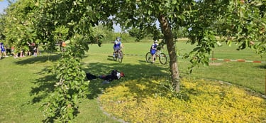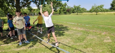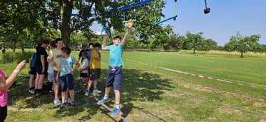 Malgré la chaleur, la bonne humeur était au rendez-vous ! Tout au long de la journée, les élèves ont relevé des défis variés et amusants : château gonflable, épreuves inspirées de Koh-Lanta et Fort Boyard, courses à vélo, parcours à l’aveugle, jeux d’équilibre et activités de coopération.