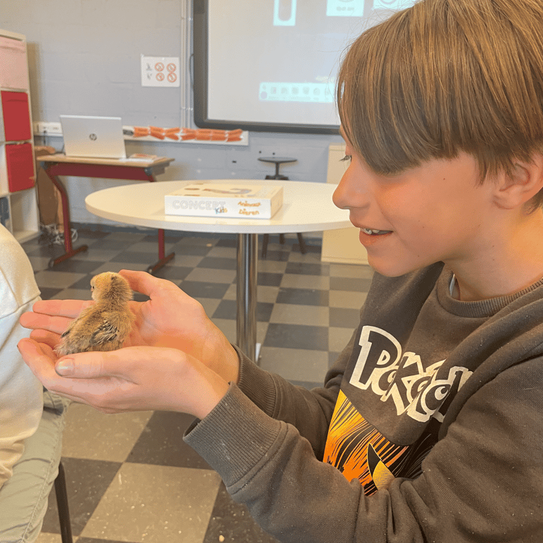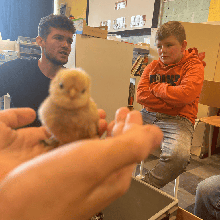 Les élèves de Monsieur Léo ont vécu une expérience originale : une poule et quatre poussins ont passé la matinée en classe !